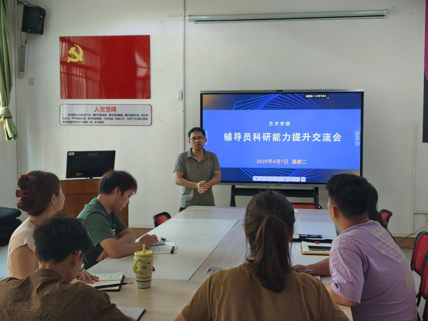 为进一步加强辅导员队伍专业化、职业化建设,提升辅导员科研素养和学术研究能力,推动学生工作高质量发展,4月7日下午,艺术学院/东盟艺术学院在大同楼D118会议室召开辅导员科研能力提升交流会。会议由艺术学院/东盟艺术学院副院长杨通明教授主持,学院全体辅导员参加本次会议。