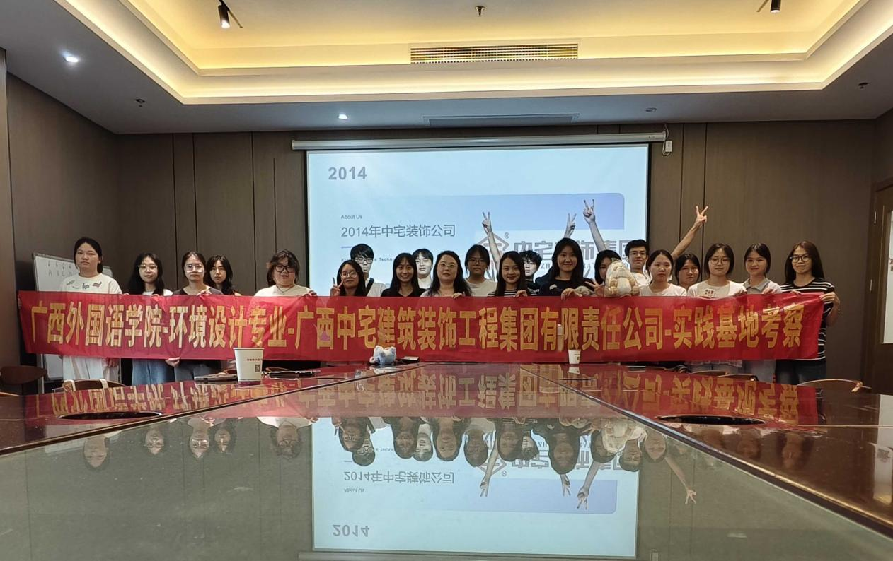 广西外国语学院环境设计2402班与中宅建筑装饰工程集团有限公司老师合照