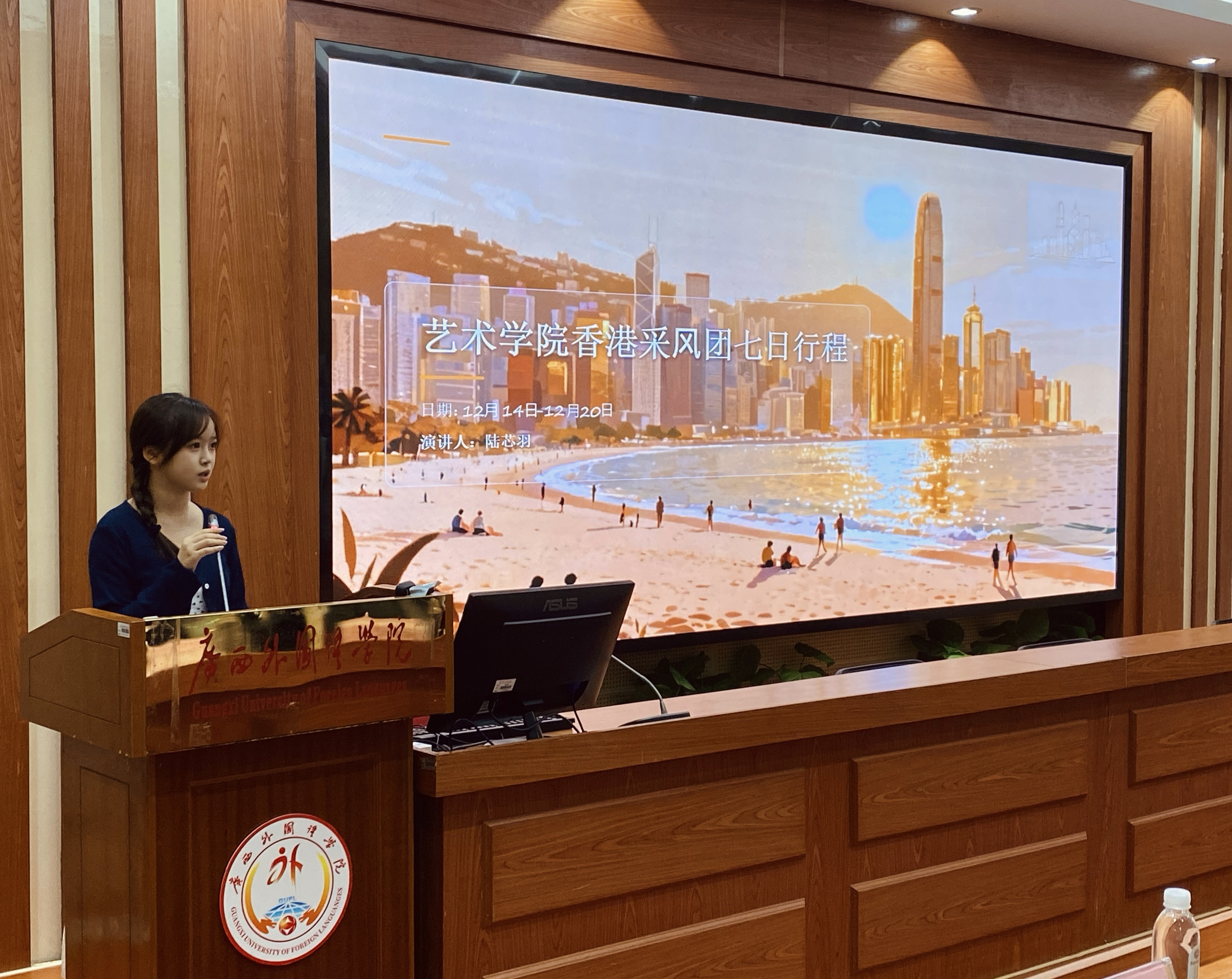 2025年12月30日,广西外国语学院艺术学院以“赴港研学,艺启新程”为主题的香港短期研学交流分享会在时习楼A101温情启幕。步履向港,艺路寻光,这场分享会不仅是对香江研学之旅的回顾,更是桂港艺术文化交流的一次生动对话。